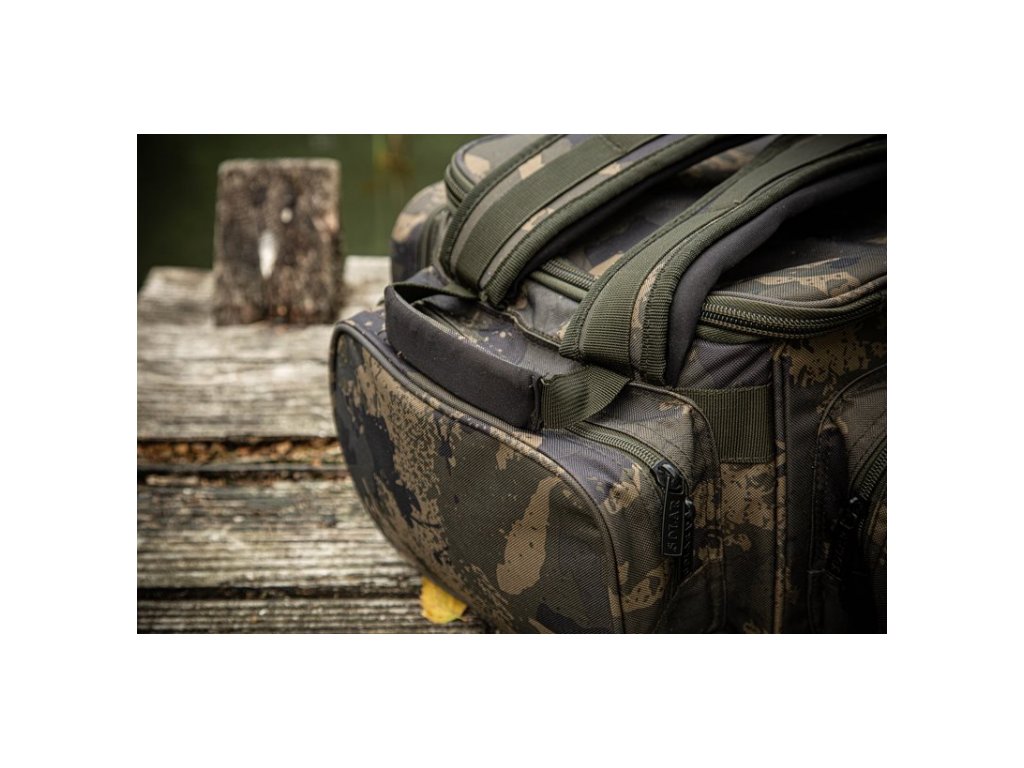 Vyztužené boky umožňují tašce držet svůj tvar, i když není plná, a profil je navržen tak, aby se snadno zasunula pod jakékoli lehátko. Čtyři vnější kapsy, všechny s dvojitými zipy a jedna dlouhá postranní kapsa na signalizátory a podobně, spojená s hlavní komorou, která má 6 vnitřních kapes, poskytují spoustu úložného prostoru. K dispozici jsou také tři vnější elastické popruhy pro uložení vidliček. Nastavitelné, neoprenové, polstrované, ramenní popruhy a hrudní popruh zajišťují pohodlné nošení a dvě madla usnadňují nošení dovnitř a ven z vašeho auta, bivaku nebo vozíku.
