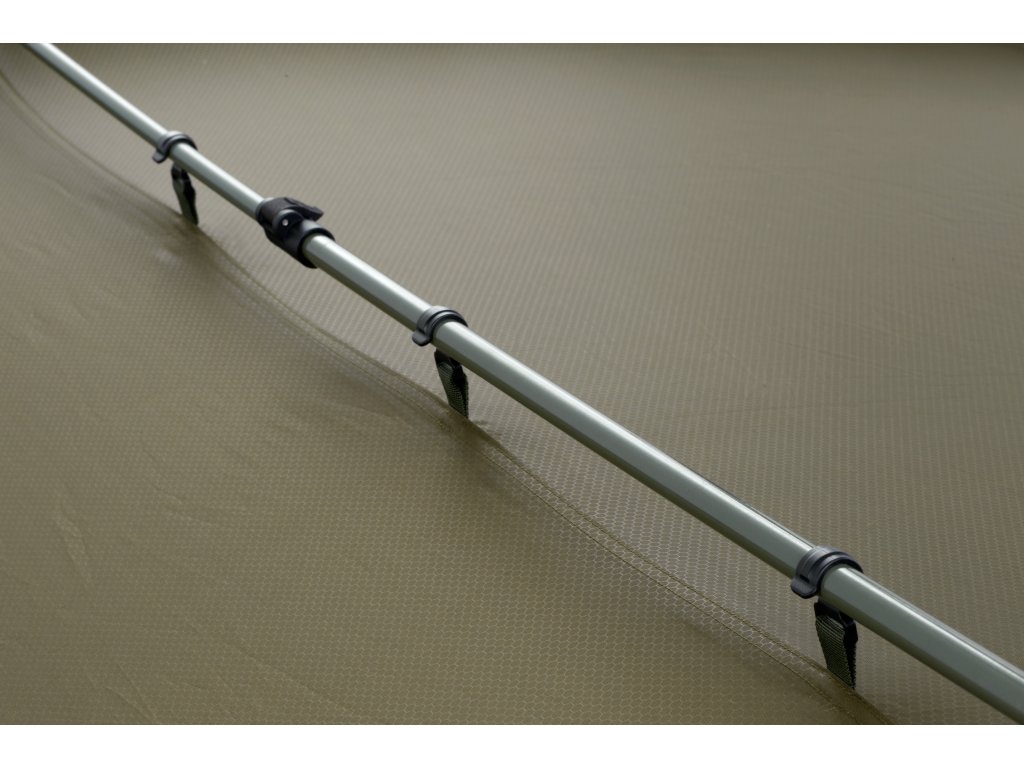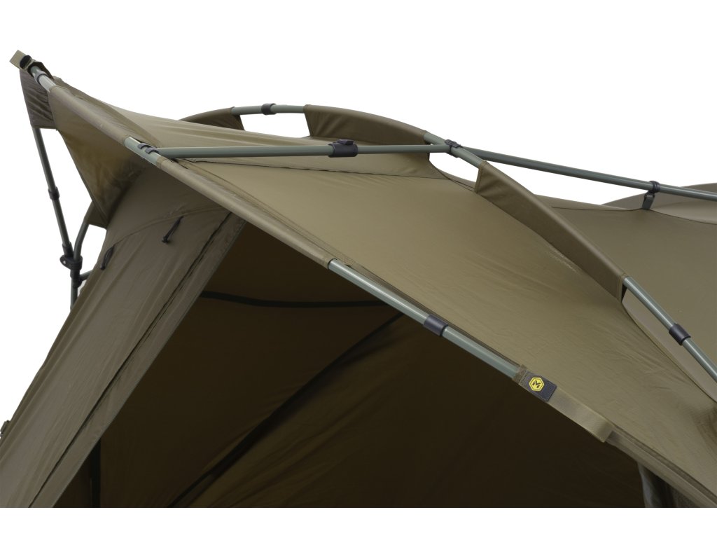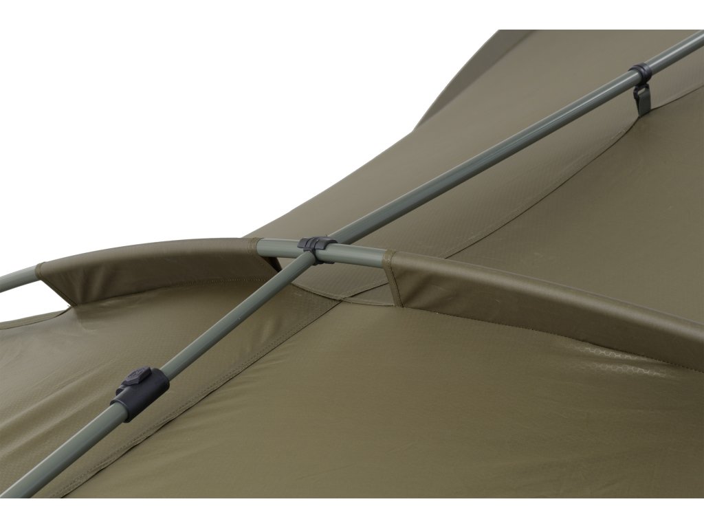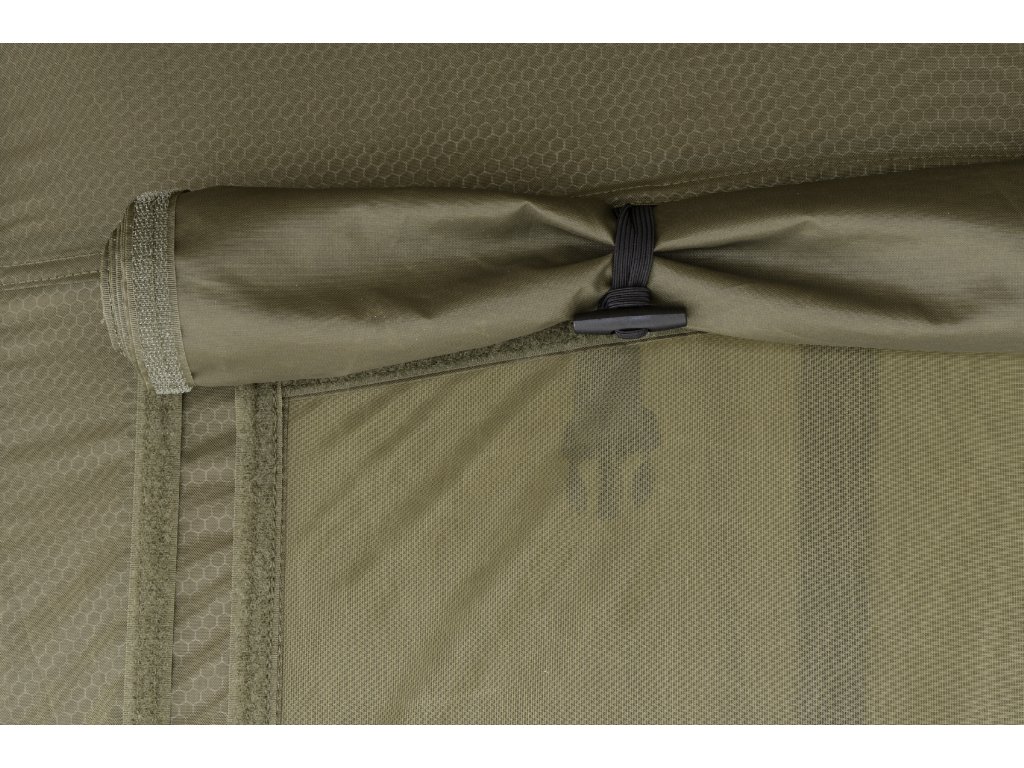 Skvěle promyšlený a propracovaný bivak, navržený značkou Mivardi od úplného základu s cílem splnit na první pohled neslučitelné požadavky většiny rybářů na ideální bivak střední třídy. Za mimořádně atraktivní cenu tak nyní můžete získat skutečně velký, rychle rozložitelný bivak pro jednoho nebo dva rybáře s velkým vnitřním prostorem, velkými zadními i předními okny a dlouhým předním kšiltem, který chrání prostor vchodu. Tento bivak je standardně dodáván s podlahou, připevněnou zipem po celém obvodu. Je mimořádně lehký a kompaktní pro přepravu. Jeho potah z materiálu M-TEC300 s hexagonální texturou disponuje vodním sloupcem 8000mm a zvýšenou mechanickou odolností. Teleskopické rozpěrné tyče jsou osazeny novými zámky Mivardi s extrémním přítlakem, a proto umožňují perfektní napnutí pláště bivaku. Klíčovým konstrukčním prvkem jsou unikátní samosvorné boční výztuhy rámu. Jejich upevnění je velmi snadné a rychlé. Po zacvaknutí jsou tyto vzpěry pevně sevřeny oběma žebry a násobně zvyšují celkovou tuhost a stabilitu bivaku. Jako praktický doplněk lze využít samostatně dostupný multifunkční držák prutů a podběráků, opřených o bivak. Ten lze navléknout na boční vzpěru. Bivak lze doplnit samostatně dodávaným, cenově dostupným a mimořádně praktickým mini přehozem s miniaturní transportní velikostí, který pokrývá strop a část bočních stěn a výrazně tak eliminuje rosení bivaku a zvyšuje komfort pobytu na přímém slunci. Dostupný je i plnohodnotný přehoz, který vytváří prostornou předsíň a zajišťuje maximální komfort pobytu.