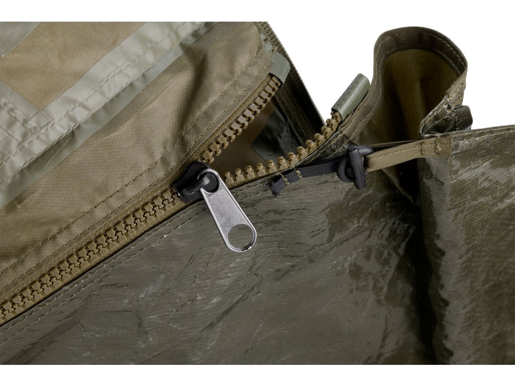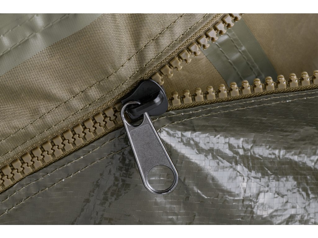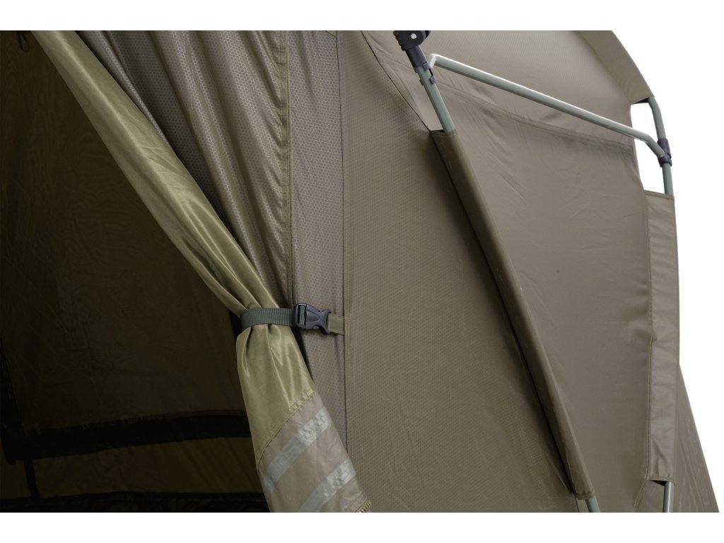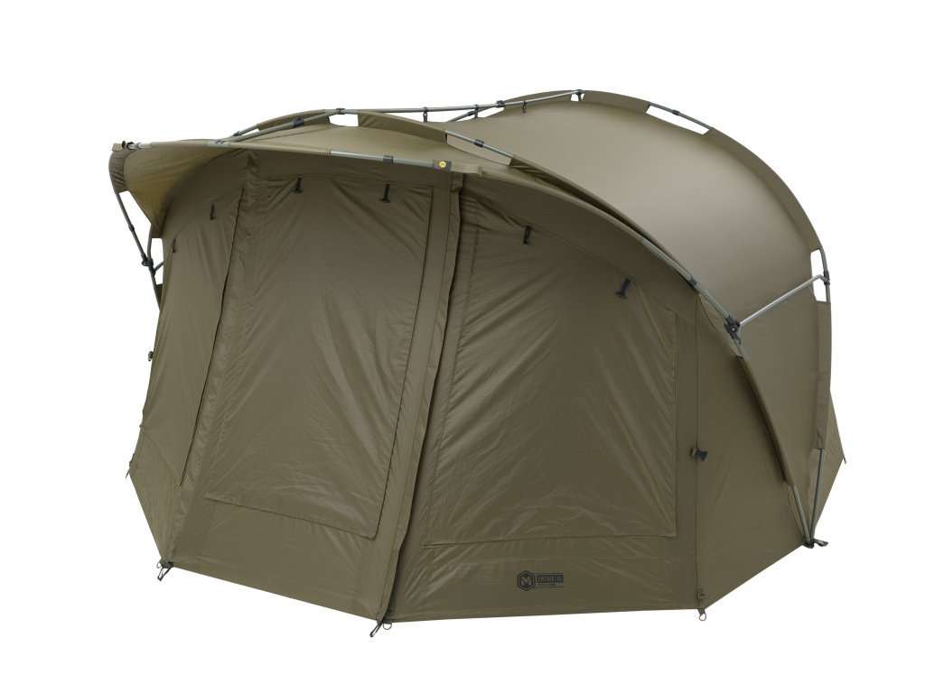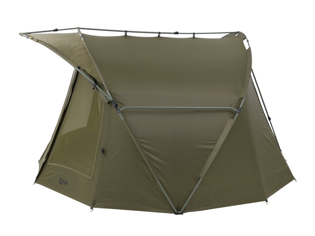 Skvěle promyšlený a propracovaný bivak, navržený značkou Mivardi od úplného základu s cílem splnit na první pohled neslučitelné požadavky většiny rybářů na ideální bivak střední třídy. Za mimořádně atraktivní cenu tak nyní můžete získat skutečně velký, rychle rozložitelný bivak pro jednoho nebo dva rybáře s velkým vnitřním prostorem, velkými zadními i předními okny a dlouhým předním kšiltem, který chrání prostor vchodu. Tento bivak je standardně dodáván s podlahou, připevněnou zipem po celém obvodu. Je mimořádně lehký a kompaktní pro přepravu. Jeho potah z materiálu M-TEC300 s hexagonální texturou disponuje vodním sloupcem 8000mm a zvýšenou mechanickou odolností. Teleskopické rozpěrné tyče jsou osazeny novými zámky Mivardi s extrémním přítlakem, a proto umožňují perfektní napnutí pláště bivaku. Klíčovým konstrukčním prvkem jsou unikátní samosvorné boční výztuhy rámu. Jejich upevnění je velmi snadné a rychlé. Po zacvaknutí jsou tyto vzpěry pevně sevřeny oběma žebry a násobně zvyšují celkovou tuhost a stabilitu bivaku. Jako praktický doplněk lze využít samostatně dostupný multifunkční držák prutů a podběráků, opřených o bivak. Ten lze navléknout na boční vzpěru. Bivak lze doplnit samostatně dodávaným, cenově dostupným a mimořádně praktickým mini přehozem s miniaturní transportní velikostí, který pokrývá strop a část bočních stěn a výrazně tak eliminuje rosení bivaku a zvyšuje komfort pobytu na přímém slunci. Dostupný je i plnohodnotný přehoz, který vytváří prostornou předsíň a zajišťuje maximální komfort pobytu.