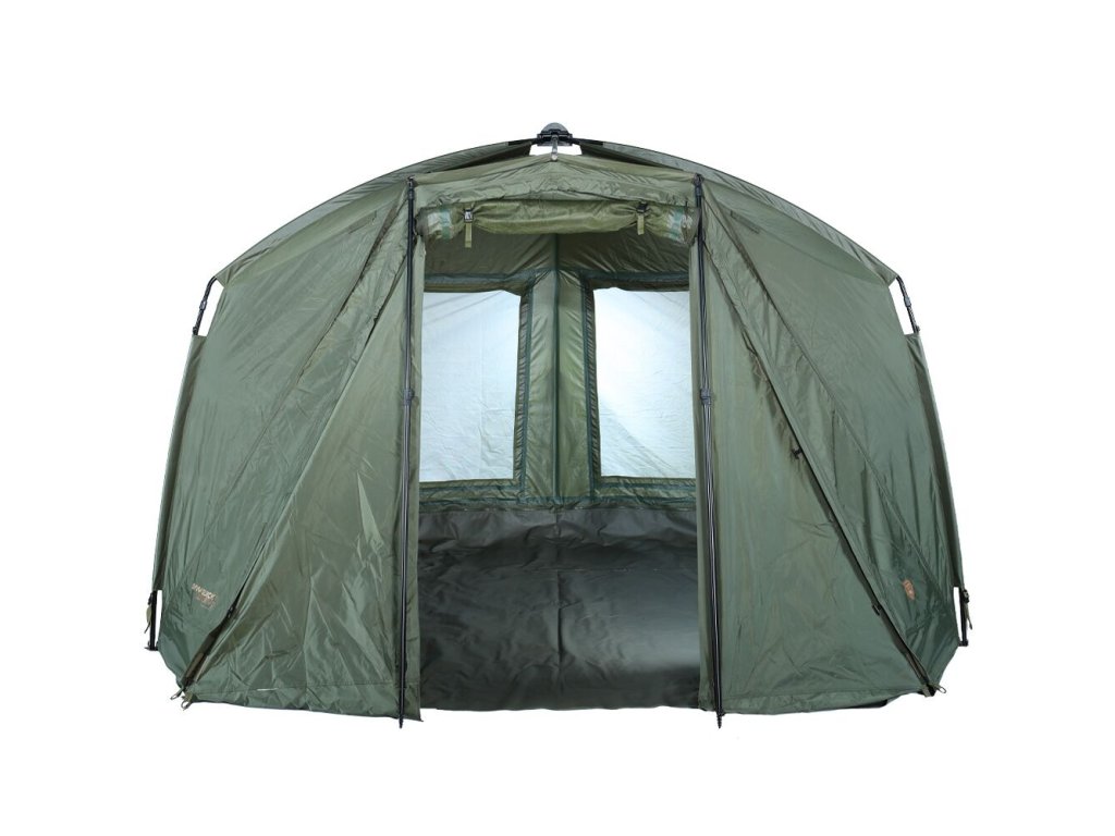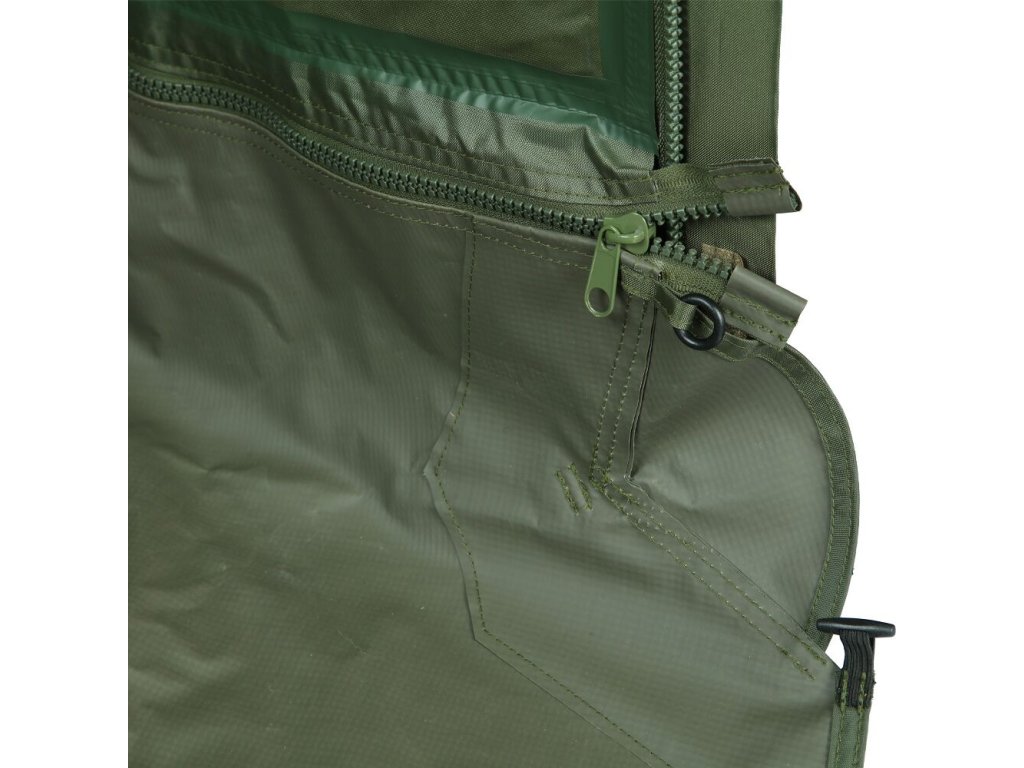 Bivak Luxury Quick 1–2 Man je ideální volbou pro rybáře, kteří chtějí trávit čas u vody v pohodlí a bezpečí, bez zdlouhavého skládání a rozkládání. Díky inovativnímu kloubovému systému jej postavíte během několika minut, což oceníte zejména při nečekaných změnách počasí nebo při pozdním příjezdu na lovné místo. Konstrukce bivaku je vyrobena z pevných hliníkových trubek o průměru 16 mm, které zajišťují stabilitu i při silném větru. Odolný materiál s vodním sloupcem až 10 000 mm poskytuje vynikající ochranu proti dešti a vlhkosti, což zajistí suché a pohodlné prostředí za jakýchkoliv podmínek. Tento bivak je dodáván včetně druhého pláště, který oceníte v extrémních podmínkách a při výpravách v chladném období. Dvě velká ventilační okna v zadní části bivaku umožňují cirkulaci vzduchu, díky čemuž se uvnitř nehromadí vlhkost ani kondenzace. I během horkých dní zůstává vnitřní prostor příjemně větraný. Prostorové řešení nabízí dostatek místa pro jednu až dvě osoby včetně vybavení. Součástí bivaku je odolná PVC podlážka na zip, která chrání proti vlhkosti od země, zesílené kolíky pro pevné ukotvení i v tvrdé půdě a praktická přepravní taška pro snadný transport. Vše je navrženo tak, aby byl váš pobyt u vody co nejpohodlnější a bez starostí.