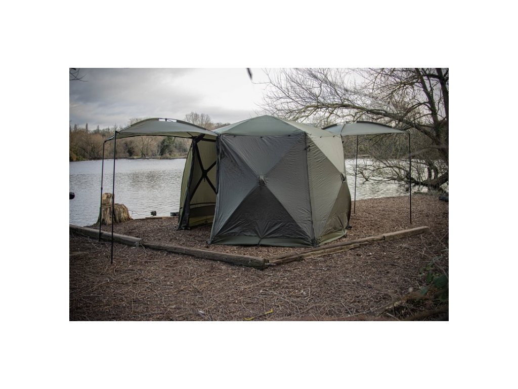 - 2 dveře, jeden na každé straně. Do zadní části tohoto přístřešku můžete umístit bivak, jako je náš Compact Spider