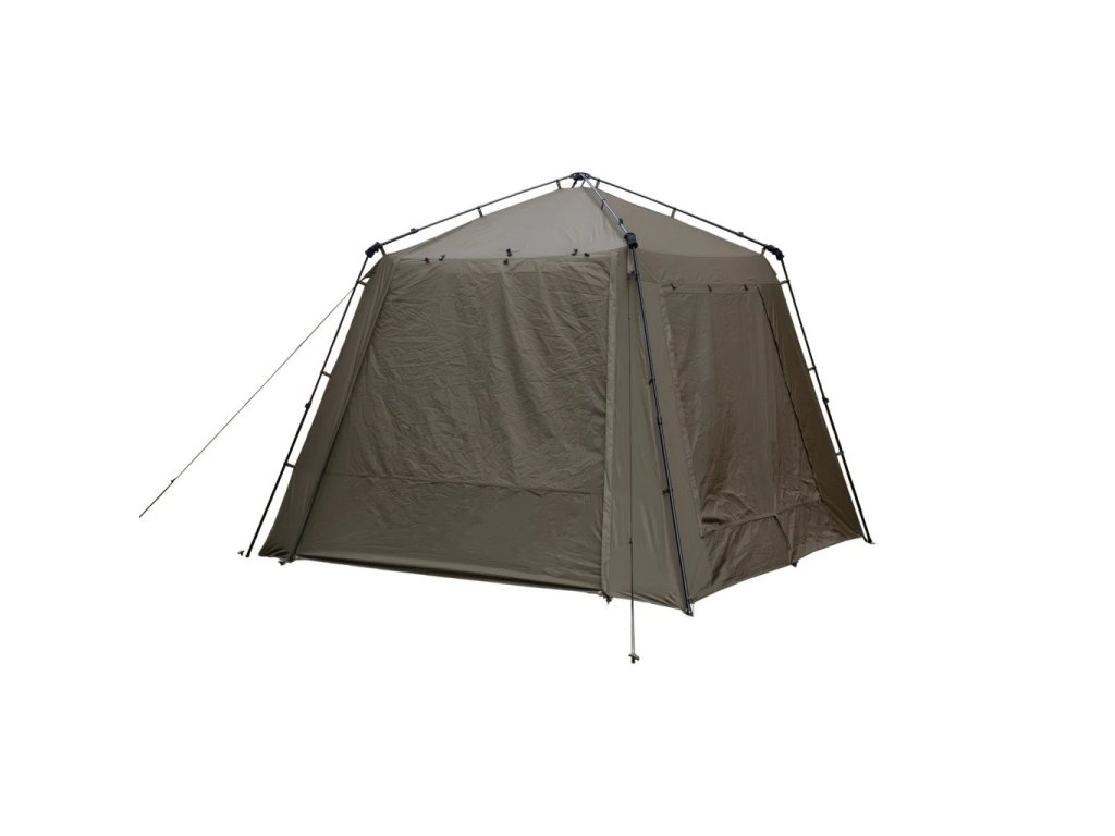 Multifunkční rybářský přístřešek Gazebo lze využít jako společenské centrum pro více rybářů, kuchařské zázemí nebo jako prostorný bivak. Nabízí dostatek prostoru pro každodenní nezbytné činnosti za jakéhokoliv počasí a navíc hromadu prostoru pro uložení vašeho dalšího rybářského vybavení. Hliníkové, teleskopické tyče Speedup poskytují robustní rám a umožňují, aby se přístřešek sbalil do kompaktní, pro jednu osobu zvládnutelnou velikost. Výška dveří byla posunuta co nejvýše, aby byla zajištěna maximální průchodnost. Dveře lze nastavit tak, aby byly plně otevřené, zavřené moskytiérou nebo plně uzavřené proti dešti. Kromě toho lze dveře použít pro vytvoření zastřešené verandy před samotným bivakem, která nabízí ochranu před ostrým sluncem. Další tři strany přístřešku můžete otevřít a srolovat nebo ponechat pouze moskytiéru. Každá ze stran je také vybavena systémem Adaptive Ventilation®, díky čemuž můžete udržovat v bivaku cirkulaci vzduchu, abyste snížili teplo a kondenzaci, a přitom se dovnitř nemohla dostat voda, když prší.