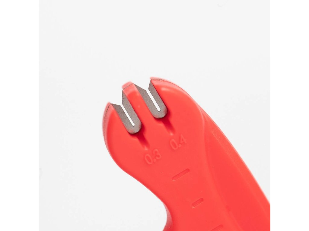 - 2 stahovací čepelky pro pohodlné a bezpečné odstranění povlaku z potahované šňůrky (0,3 a 0,4 mm)