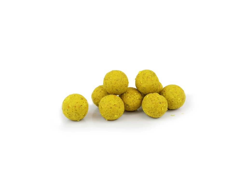 Ready boilie Corn. Není kukuřice jako kukuřice – tohle boilies má jednu výjimečnou vlastnost: po vhození do vody začne vonět ještě intenzivněji než v suchém stavu a kukuřičná vůně se pod vodou krásně rozvine, takže dokáže rychle přilákat ryby i z větší vzdálenosti. Zároveň si drží silný potravní signál i po mnoha hodinách ve vodě. Má přirozeně sladký kukuřičný profil, který je pro kapry důvěryhodný a neodolatelný, protože kukuřici přirozeně vyhledávají a často ji při krmení upřednostňují. Díky stabilní práci pod vodou podporuje rychlé i opakované záběry i na tlakových revírech. Základ tvoří směs rostlinných, rybích a masových mouček, kulička se postupně povrchově změkčuje a uvolňuje další lákavé látky, přitom kukuřičný signál zůstává čitelný bez nepříjemné vtíravosti. Rozpustnost je zhruba 8–24 hodin podle teploty vody a aktivity bílé ryby, takže je vhodné pro celoroční použití v teplé i studené vodě.