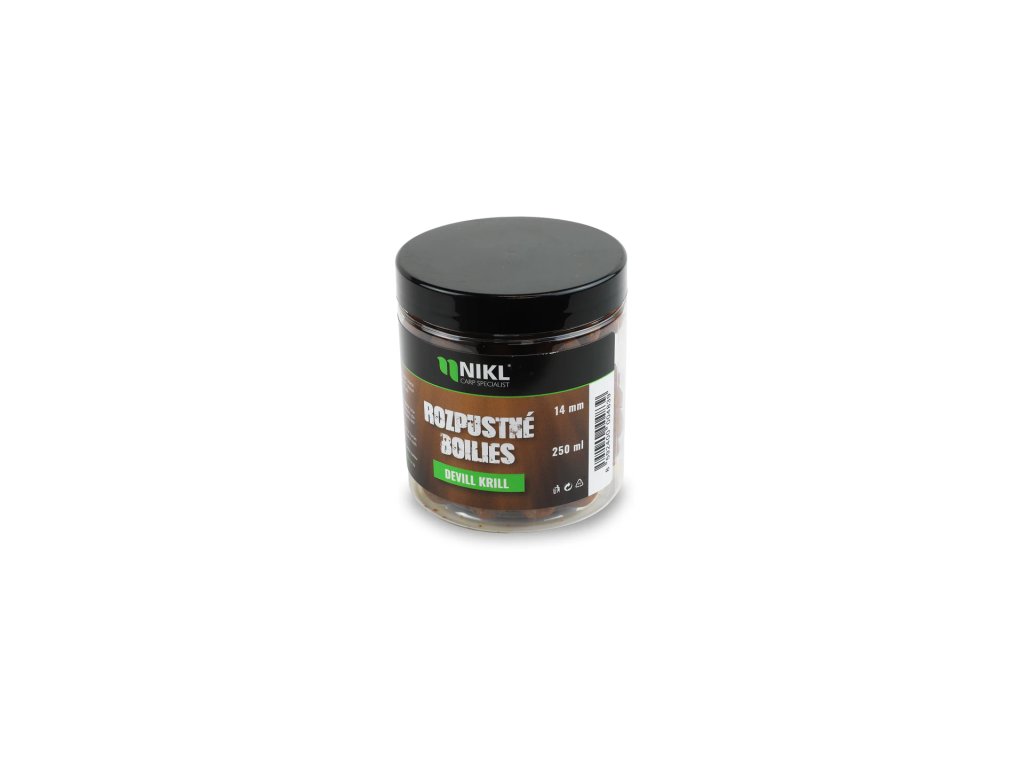 Nikl Rozpustné boilies Devill Krill 250ml (Varianta Nikl Rozpustné boilies Devill Krill 250ml - Průměr: 18mm, Balení: 250ml) Kód produktu 2005065 Varianta: Nikl Rozpustné boilies Devill Krill 250ml - Průměr: 24mm, Balení: 250ml Skladem 175 Kč