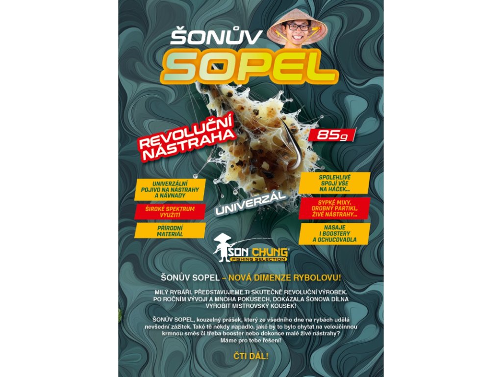 Objevte novou dimenzi rybolovu s Šonovým Soplem – inovativním práškem, který promění běžný den u vody v neobyčejný zážitek. Po roce vývoje a testování přichází mistrovský produkt, který umožňuje vytvářet nejen dokonalé nástrahy, ale i návnady.