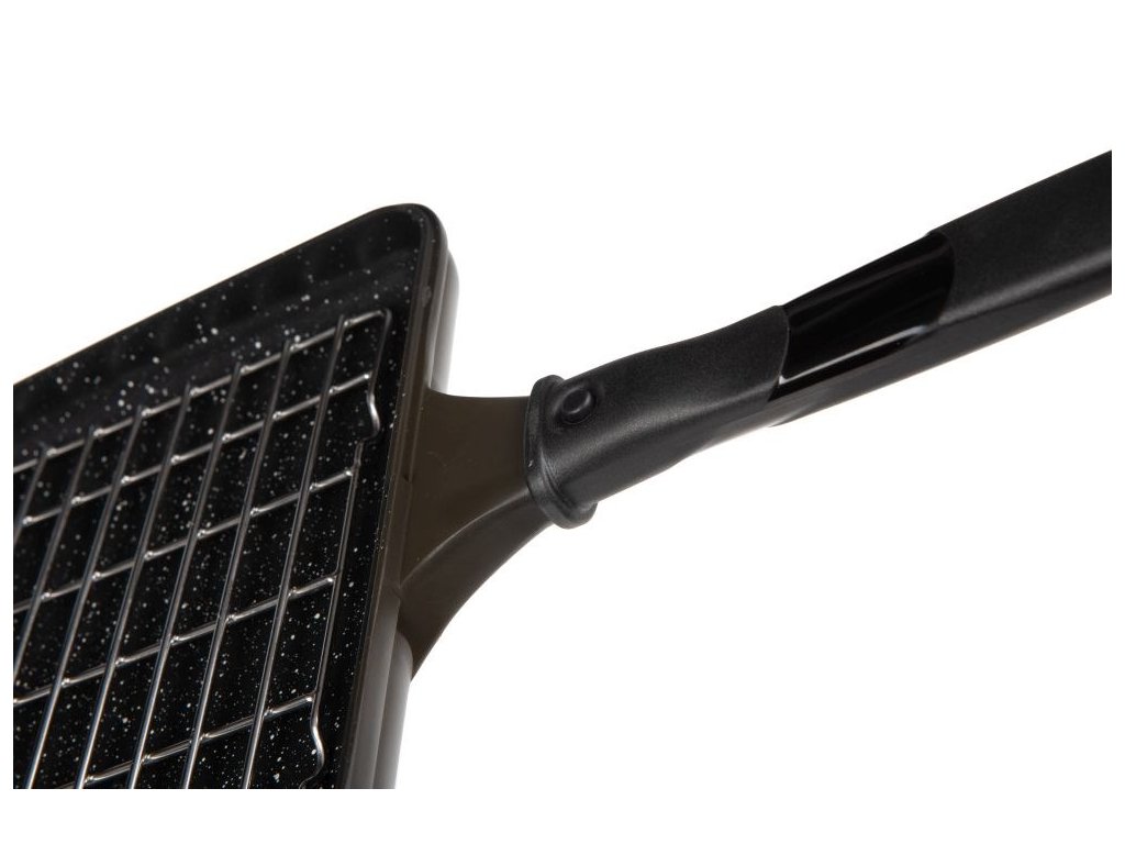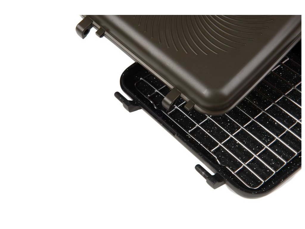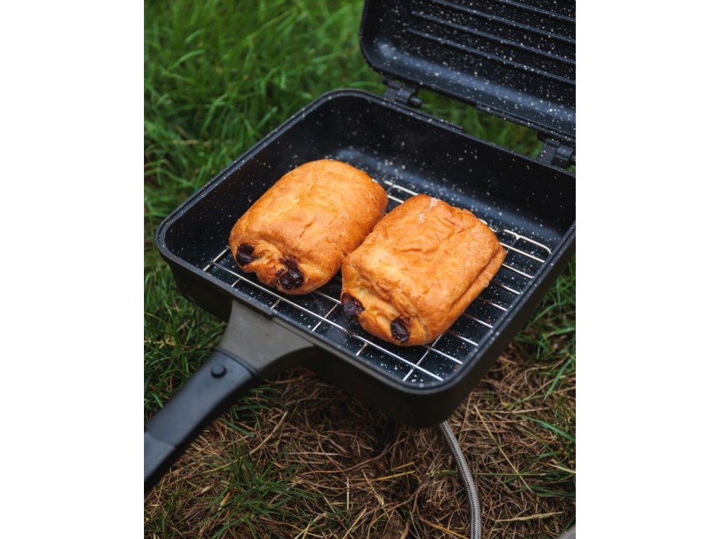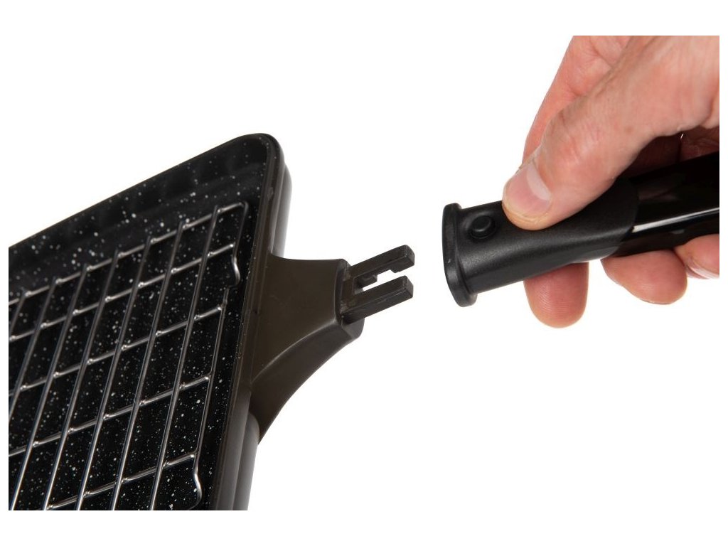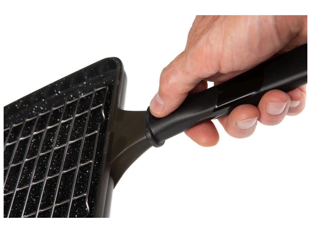 * Součástí je mřížka z nerezové oceli omezující kontaktu připravovaných sladkostí a pizzy s povrchem pánve, omezuje tak jejich připálení.