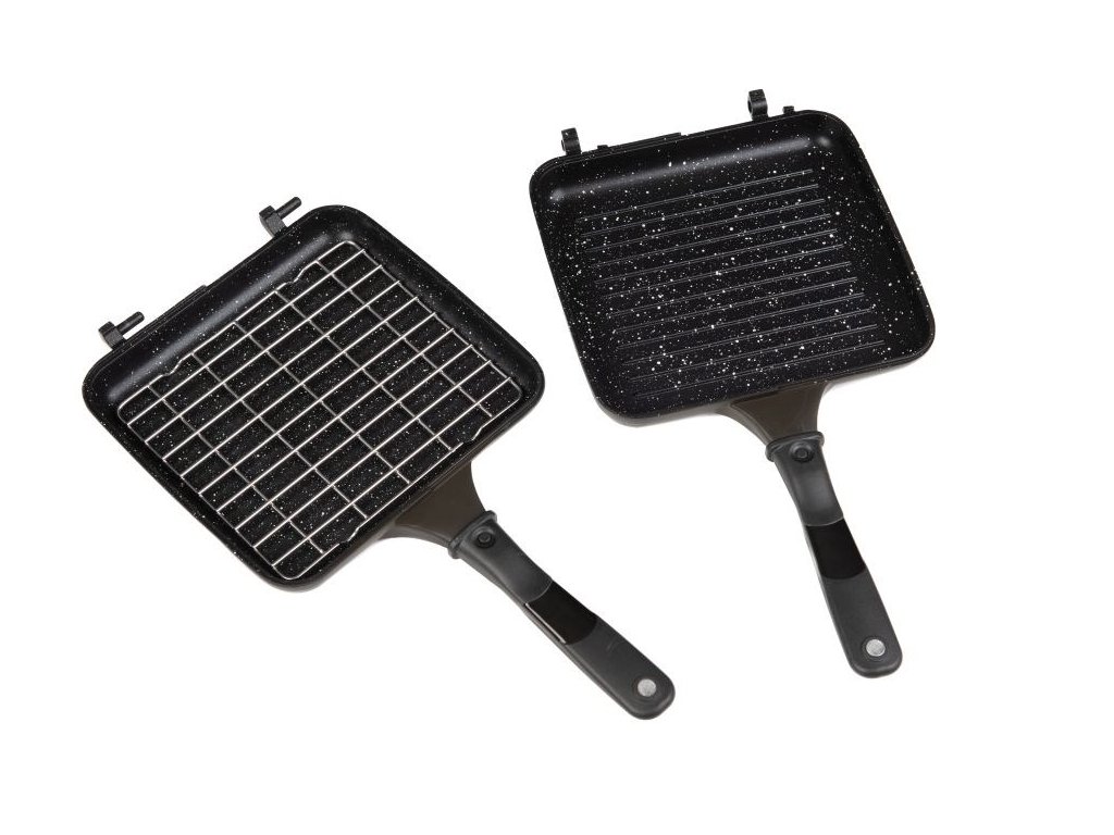 * Cookware Multi-Pan – 198mm x 185mm x 45mm, hladká polovina – výška 22,5mm, grilovací polovina – výška 22,5mm.