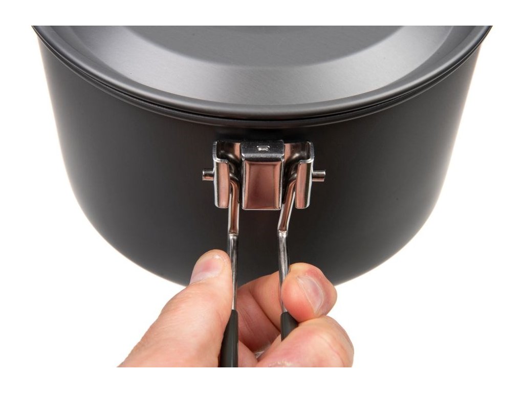 * Nádobí opatřené odolnou sklopitelnou rukojetí umožňující kompaktní skladování.