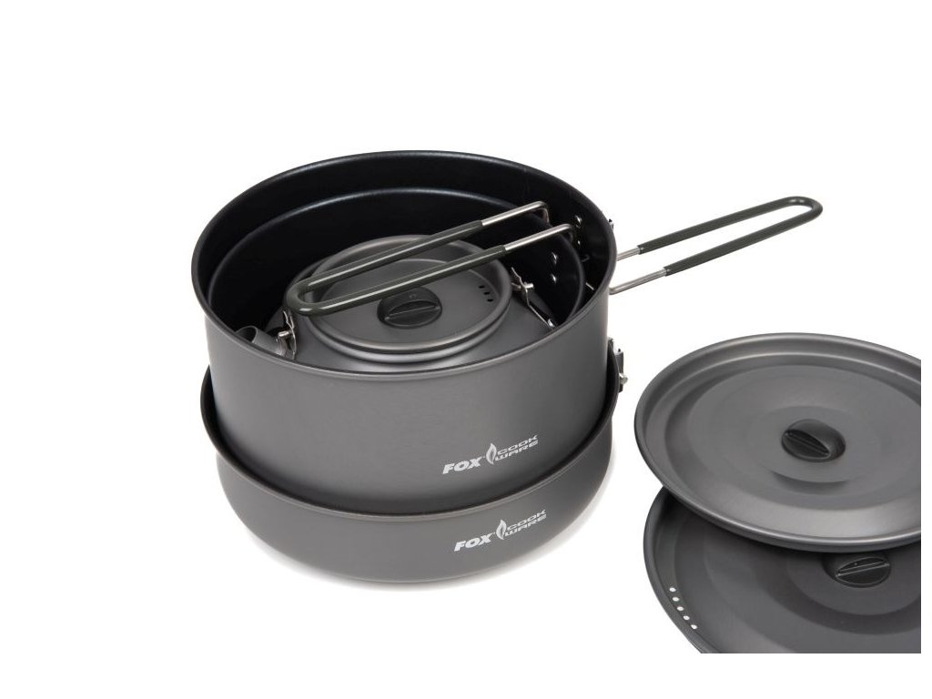 Velká 4 dílná sada nádobí obsahuje 0,9l konvici Heat Transfer, střední hrnec obsažený 3 dílné sadě a dále velkou pánev a velký hrnec, ideální pro ty rybáře kteří si rádi připravuji skutečné hostiny.