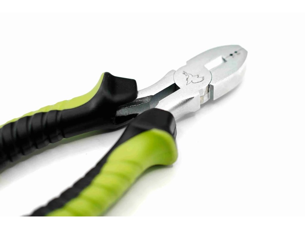 Pokud využíváte Krimp set je vždy důležité, aby vše bylo ruku v ruce s použitými materiály tak aby byla spojení krimpů s vlascem co možná nejpevnější a přitom nebyla narušena nosnost použitého materiálu. Čelisti jsou označeny M a L pro označení krimpů které mají být použity (0,7 mm nebo 0,6 mm). Vždy dbejte na to aby jste zvolili vhodný návazcový materiál tak aby jste dosáhli co možná nejsilnějšího spojení. Jsou vyrobeny z měkké oceli s pogumovanými rukojeťmi, které vám umožňují dobré uchopení a dopomůže správnému vytvoření tlaku na krimp , navíc má v čelistech dvě ostré hrany na odstřihnutí vlasce při finální úpravě vaší montáže.