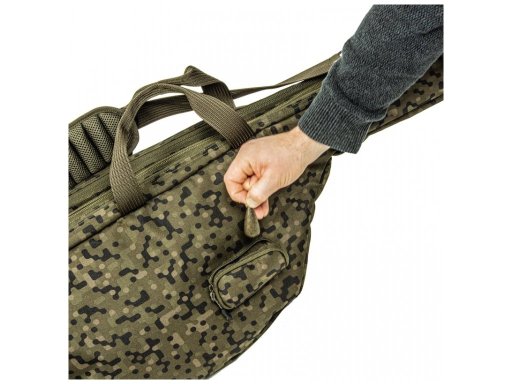Integrovaná kapsa na závaží se zipem umožňuje ukládání závaží bez rizika poškození prutů. Obal je vyroben z materiálu SolarCam, což je digitální maskování Solar, silné a odolné vůči těžkým podmínkám.