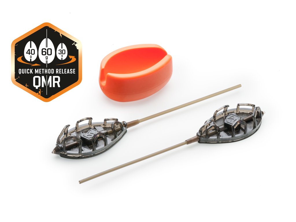 Sada unikátních method krmítek od značky MIVARDI se systémem QMR a formičky na návnadu. Systém QMR umožňuje snadnou výměnu krmítka na hotové montáži za jiný typ nebo velikost krmítka QMR během několika vteřin. Speciálně tvarované tělo zajišťje spolehlivé postupné vyplavování a rozpouštění návnady ze všech stran a zároveň perfektně drží návnadu při dlouhých náhozech. Je optimalizováno pro použití s vnadícími směsmi střední a jemnější zrnitosti. Krmítko je precizně odlito z odolného plastu v tmavém, kouřově olivovém zabarvení. Zátěže na spodní straně krmítka jsou v maskovacím designu. Krmítko se dodává s adaptérem pro rychlou výměnu koncového návazce a převlekem proti zamotání. Verze Long je vybavena prodlouženou tuhou trubičkou, která brání zamotání návazce při náhozu.