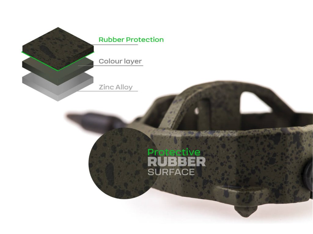 • Pogumované matně zelené provedení s černými tečkami - skvělé maskování