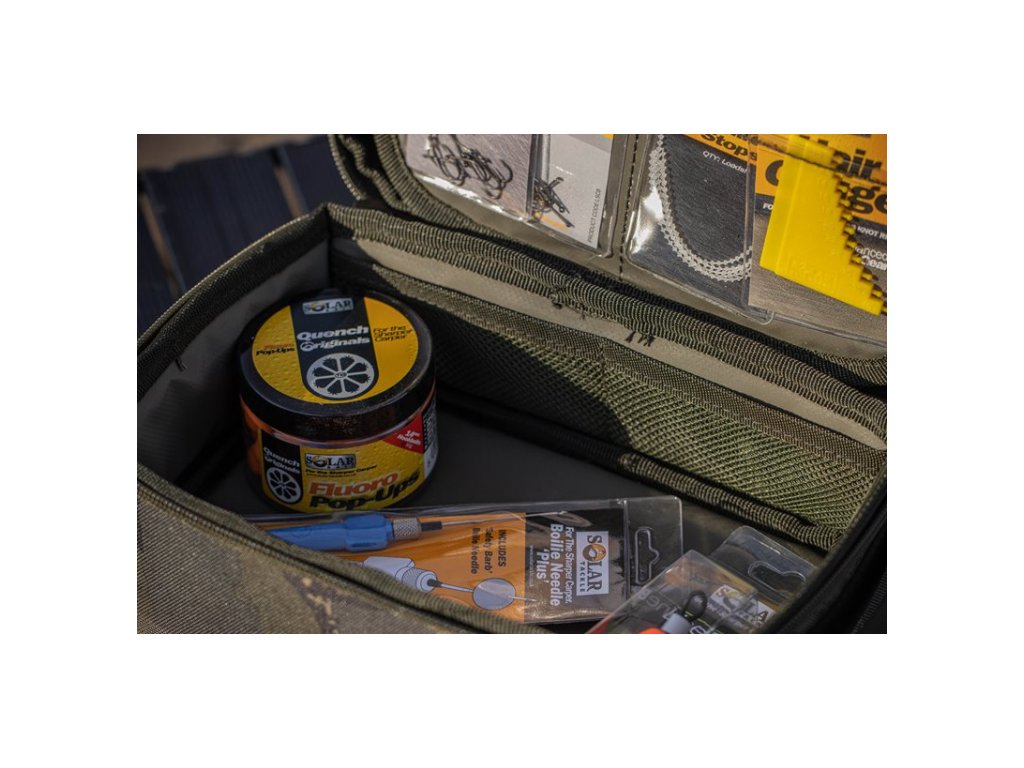 Nejnovějším členem série Solar Tackle Undercover je Undercover Camo Multi-Pouch. Díky pečlivému plánování a složení z nejmodernějších materiálů vyvinul tým designérů Solar tašku, která splňuje všechny potřeby a má vysoké ukazatele kvality. Na tuhé horní ploše si pohodlně upravíme návazce a nástrahu, ale můžeme si postavit i stabilní stolek pro náš tablet. Vnitřní dělící stěna se systémem Mag-Loc (magnetická), jakož i vnitřní kapsy na zip a suchý zip nabízejí dokonalé řešení pro tříděné uložení příslušenství a drobností. Díky své velikosti je kompatibilní s ostatními taškami a batohy Solar SP.