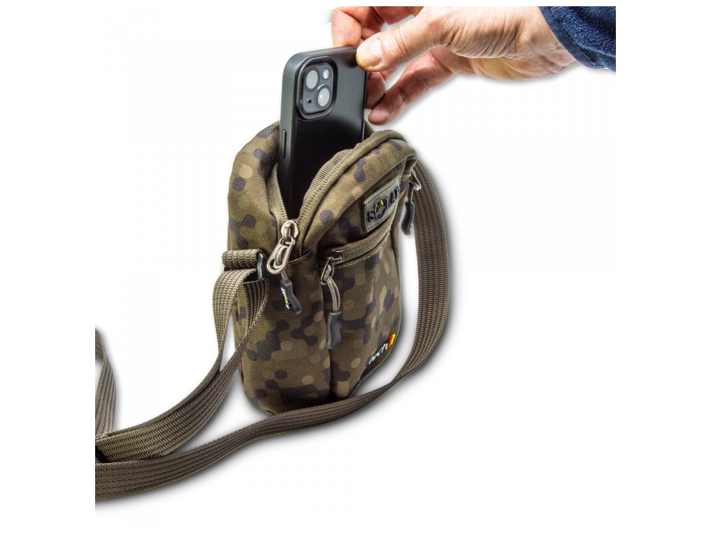 Stash Bag (21 × 16 × 5 cm) je navržena pro kompaktní uložení. Nabízí praktickou hlavní přihrádku s vnitřní přepážkou, která udrží vaše vybavení bezpečně na místě. Přední i zadní strana tašky je vybavena zipovými kapsami pro rychlý přístup k drobnostem. Nastavitelný ramenní popruh pak zajišťuje pohodlné nošení – ať už se vydáte kamkoli. Stylový design Solar-Cam Camo dokonale ladí s přírodním prostředím.