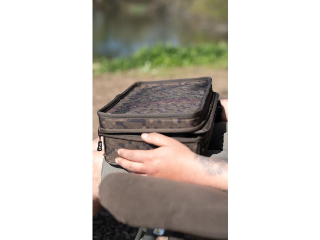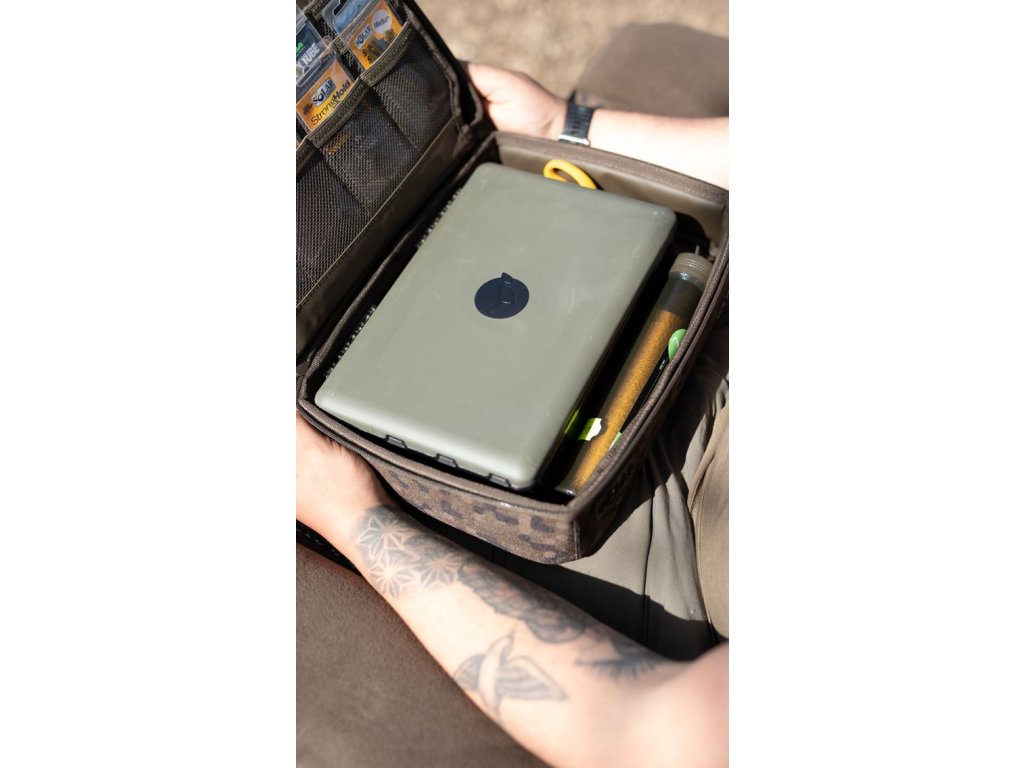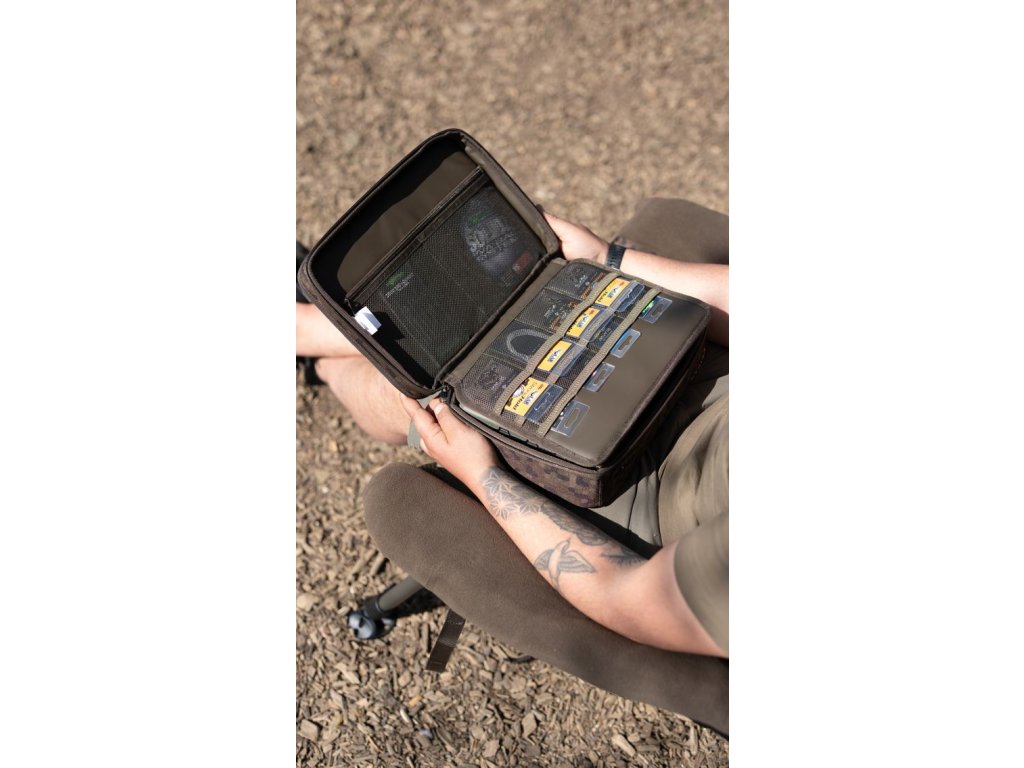 Pevná konstrukce Vertabr8 a víko z pěny EVA zajišťují bezpečnost uložených věcí a pohodlnou pracovní plochu. Odolné, snadno čistitelné vnitřní prostory a funkční uspořádání přihrádek pomáhají udržet pořádek i při velkém množství vybavení. Verze Large má až 24 kapsiček z síťoviny integrovaných s centrálním separátorem Mag-loc a velkou kapsu typu stash na větší příslušenství.