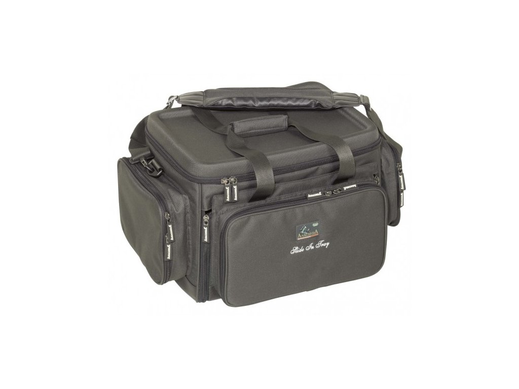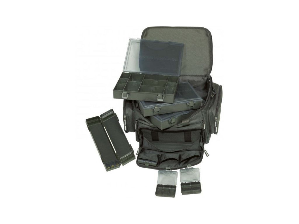 Tato taška je skutečně vynikající výrobek, u kterého je vše promyšleno, do posledního detailu. Jedná se o masivní rybářskou tašku. Po stranách jsou dvě vyztužené kapsy. Taktéž víko je vyztužené a po stranách vystouplé. Zapnutá taška, tak může sloužit, jako stoleček do bivaku. Uvnitř jsou přepážky na suchý zip, pro lepší koordinaci. Součástí dodávky jsou tři krabice na drobný rybářský materiál, dále dvě menší krabičky a jedna krabička na návazce. Vpředu se nachází velká kapsa s masivním zipem. Taška má dvě polstrovaná ucha a extra silně polstrovaný popruh na rameno. Samozřejmostí je omyvatelné dno z PVC, odolné proti vodě. Na výrobu tašky byl použit voděodolný polyester 600D. Přepravní rozměry jsou60 x37 x 24cm.
