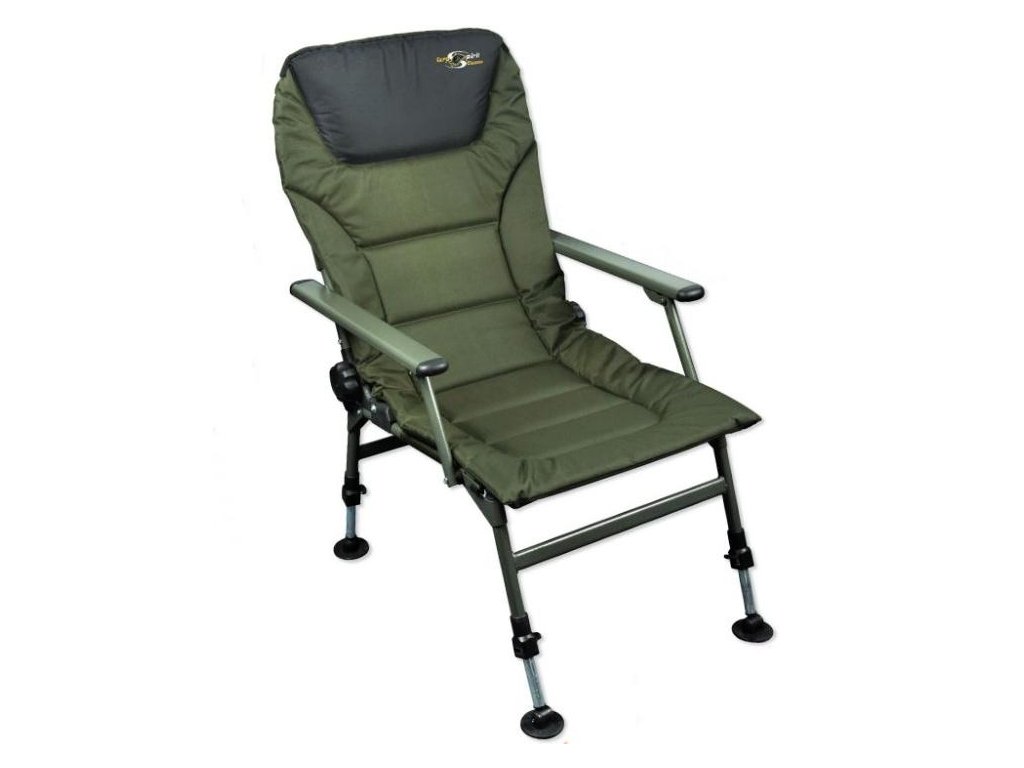 Polstrované křeslo s opěrkami rukou• ocelová nosná konstrukce• 4 teleskopické nohy s velkými naklápěcími patkami• spolehlivé bezpečné klipy s aretací• prošívaná Cordura 500D se širokými lemy• maximální nosnost: 100 kg• velikost: 85×51×46 cm • hmotnost křesla: 6,5 kg