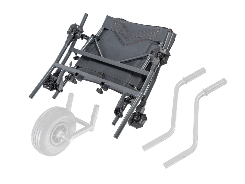 Speciální křeslo pro lov na feeder. Je osazeno čtyřmi teleskopickými nohami pro snadné ustavení na nerovném břehu. Nohy mají průměr 25mm a proto umožňují nasazení nejrůznějšího příslušenství, které je pro tento průměr snadno dostupné. Přední nohy umožňují variabilní vysunutí do stran a tím i dosažení ještě vyšší stability. Anatomické tvarování matrace je podpořeno i tvarováním rámu sedáku. Optimálně zvolené polstrování zajišťuje vysoký komfort i při dlouhém sezení. Toto křeslo může být doplněno o unikátní přepravní systém (dostupný samostatně). Ten z křesla během několika vteřin udělá stabilní transportní vozík, který zajistí pohodlnou přepravu celé vaší výbavy.