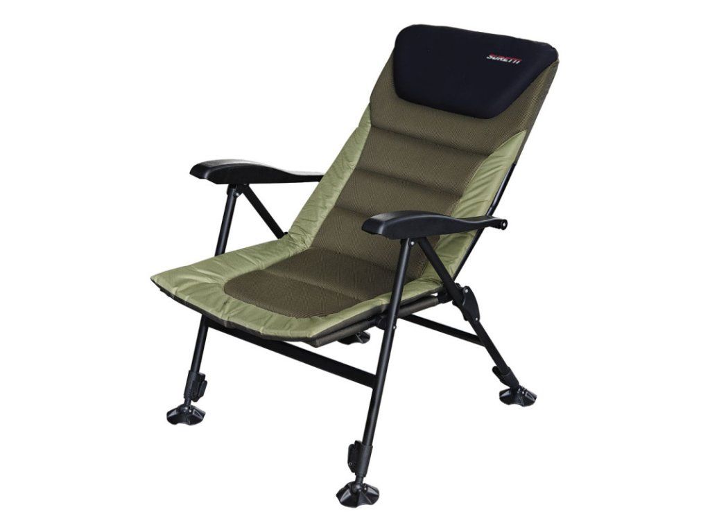 Styl, pohodlí, praktičnost a odolnost. Polstrovaný potah z polyesteru 600D je nejen skvělý na pohled, ale také poskytuje maximální pohodlí, které je umocněno loketní opěrkou a nastavitelným opěradlem. Čtyři individuálně nastavitelné nohy umožňují umístění křesla i na tom nejnerovnějším terénu a rozměry matrace zajišťují, že vaše tělo bude mít plnou oporu pro pohodlí i při dlouhých sezeních. Toto křeslo je vyrobeno z ocelových trubek s antikorozní úpravou a rybáři bude sloužit dlouhodobě.