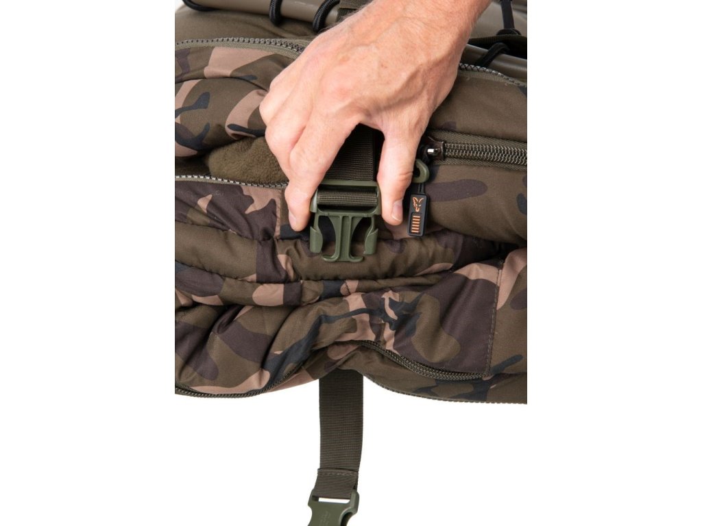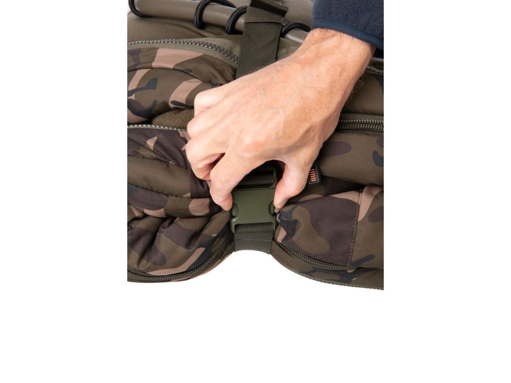 * Polstrovaná matrace potažená flísem s extra polstrováním v místě polštáře ve Fox Camo vzoru.