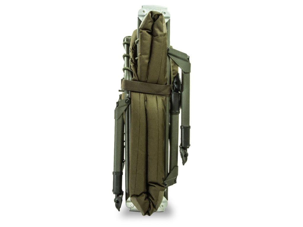 Inovativní systém pantů Flat-Pac a kompresní popruhy usnadňují balení a rozbalování lehátka. Díky tomu jej lze kompaktně složit, i když jsou nohy stále rozložené uvnitř stanu a matrace se nedotýká podlahy. To je obzvláště užitečné při rychlém stavění a skládání tábora.