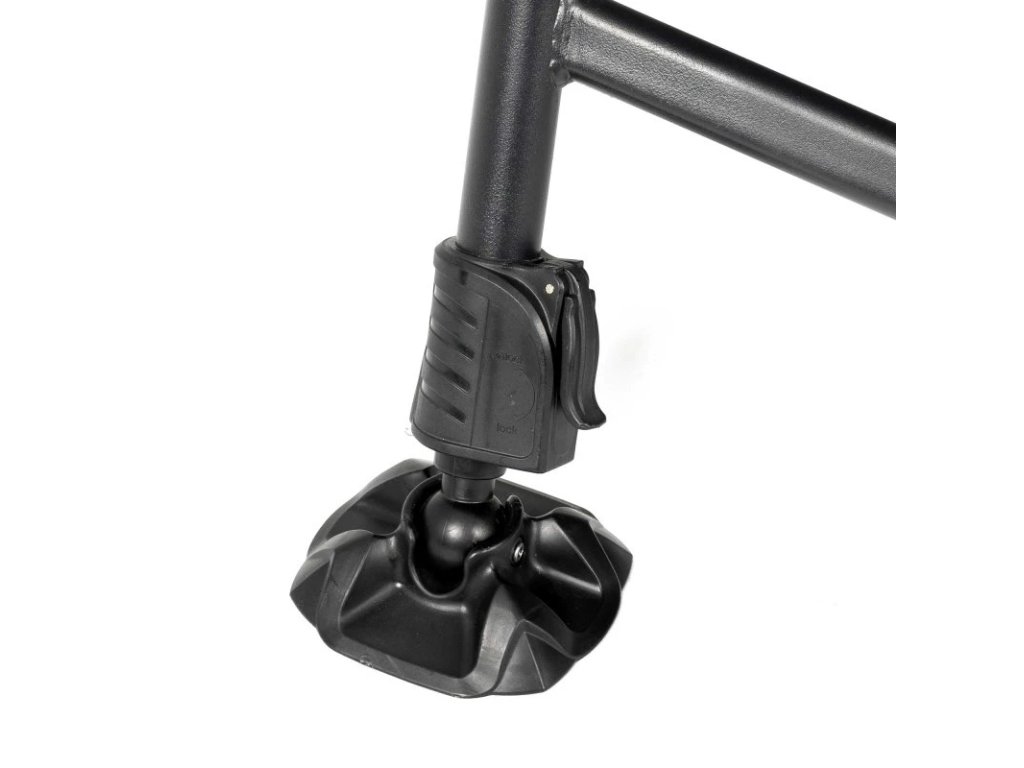 Má plně nastavitelných 6 nohou s otočnými patkami pro rovnoměrné rozložení zátěže, silný rám s úplně plochým profilem a vodováhou pro dokonalé vyrovnání i na nerovných svazích.