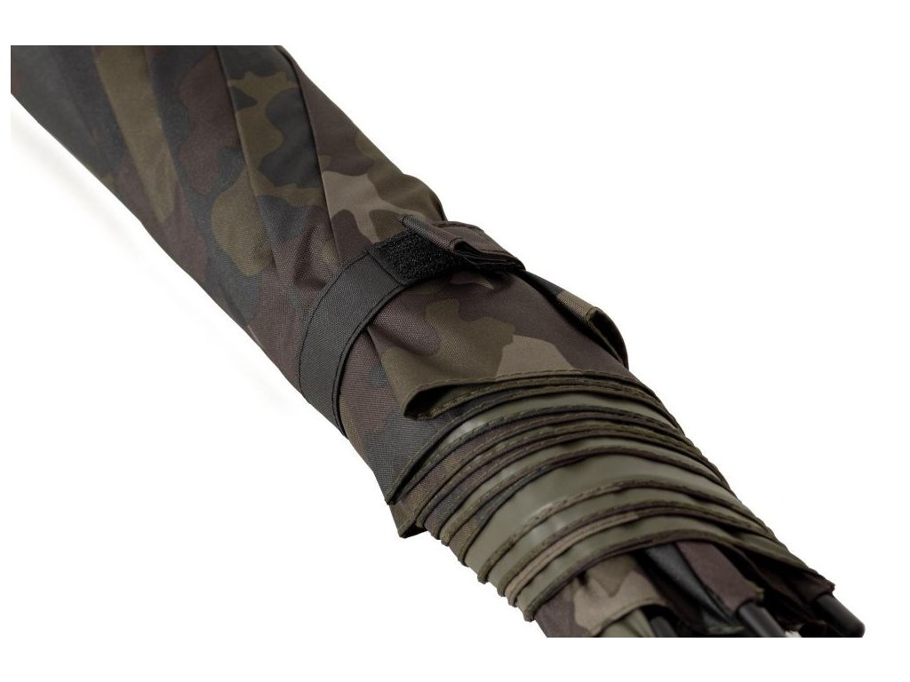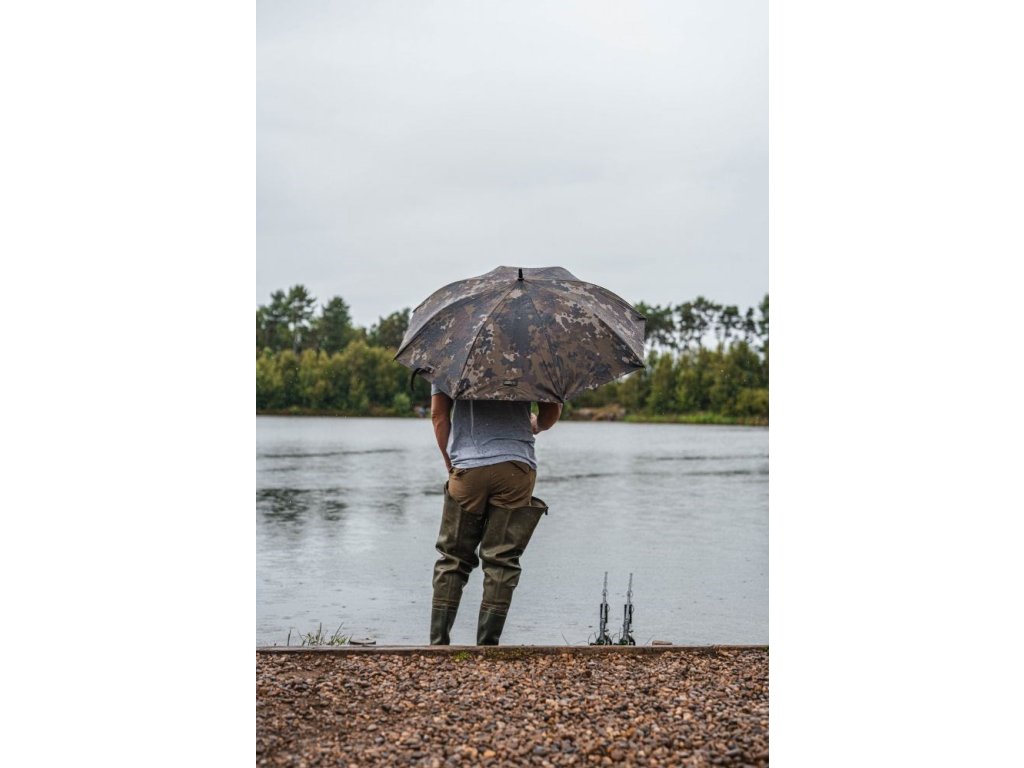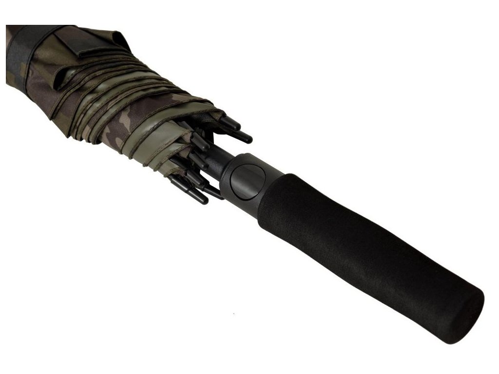 Poskytne vám spolehlivý úkryt před neutuchajícím deštěm nebo ochrání před ostrým letním sluncem – prostě vás nenechá ve štychu. S velkorysým průměrem 140 cm nabízí pohodlné celoplošné krytí. A jelikož jde o rybářský deštník, samozřejmostí je i správné barevné provedení – vyrobený z nepromokavé látky v dark kamo matném designu, vypadá skvěle a má daleko od běžného golfového deštníku. Praktické ovládání jedním tlačítkem zajistí, že se schováte před počasím rychle a bez námahy. Integrovaný upevňovací popruh zase zaručí kompaktní a bezpečné uskladnění ve vašem pouzdru na pruty.