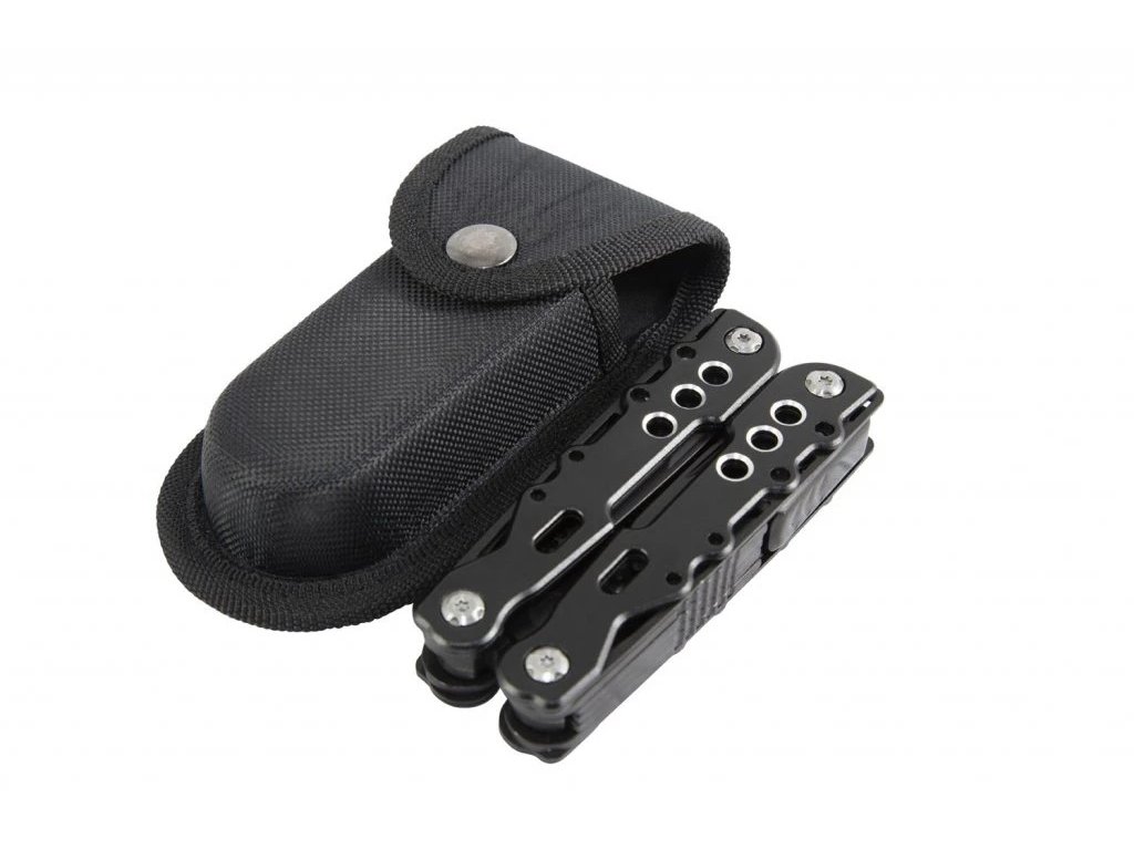 - obsahuje 14 nástrojů: kleště, ostré kleště, štípač drátů, nástroj na stahování potahů, malý nůž, otvírák flašek, otvírák na konzervy, velký nůž, pilku na dřevo, pilník na nehty, velký plochý šroubovák, malý plochý šroubovák a křížový šroubovák