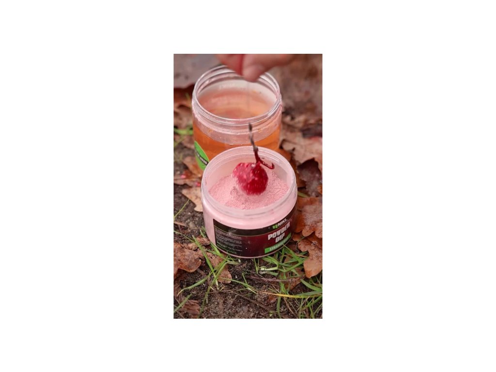Pro maximální účinnost namočte nástrahu ve vodě či tekutém dipu, nechte okapat, následně obalte v práškovém dipu a nechte zavadnout cca 2 minuty. Tento postup je možné opakovat vícekrát pro extra dlouhou atraktivitu.